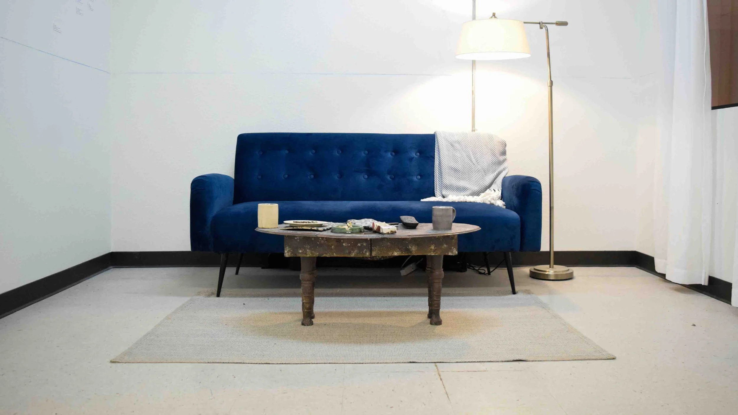 The artist invites viewers to sit on the couch in front of the impacted coffee table; a familiar space heavily impacted by flood. What’s on your coffee table at home? What could be saved if the floods came? What would you lose?